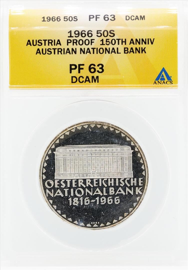 One 1966 Austria Proof 50 Shilling Silver Coin ANACS PF63 DCAM. ANACS Certified.