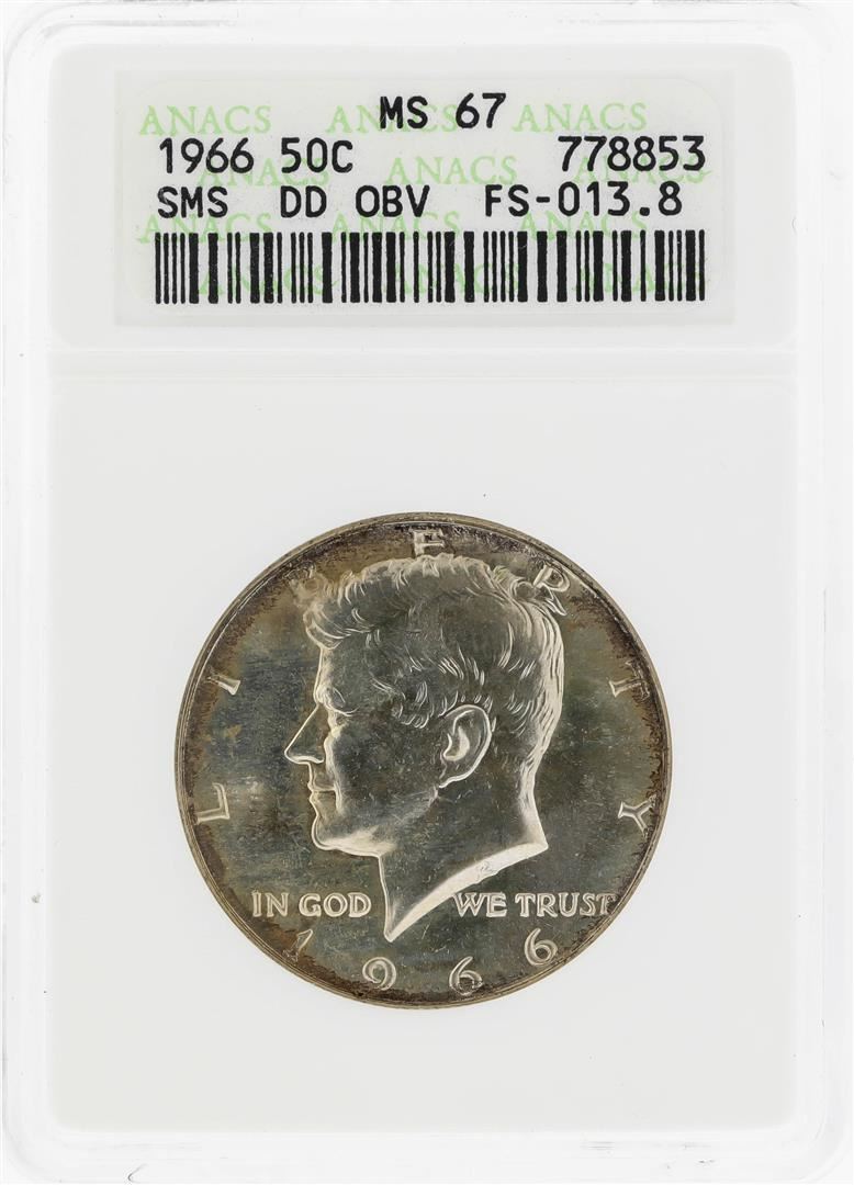 One 1966 Double Die Kennedy Half Dollar Coin ANACS MS67. ANACS Certified.