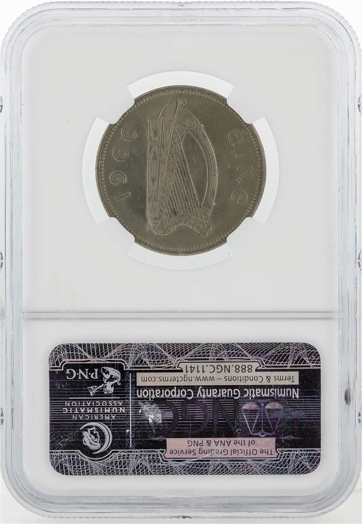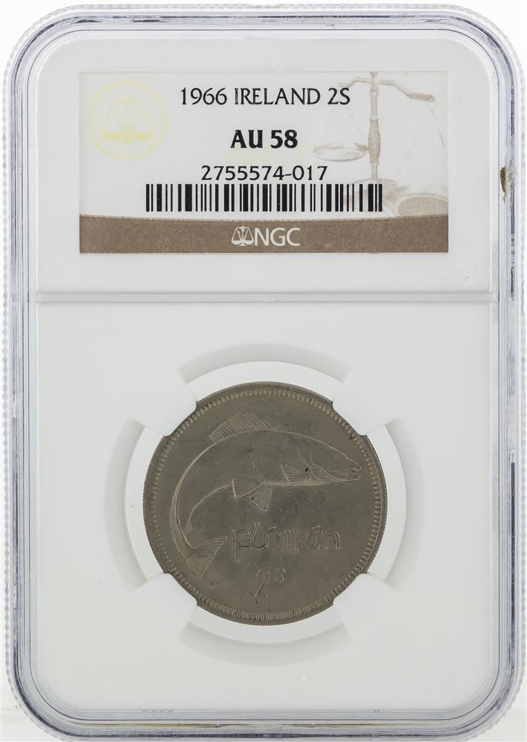 One 1966 Ireland Eire Floirin 2 Shilling Coin NGC AU58. NGC Certified.