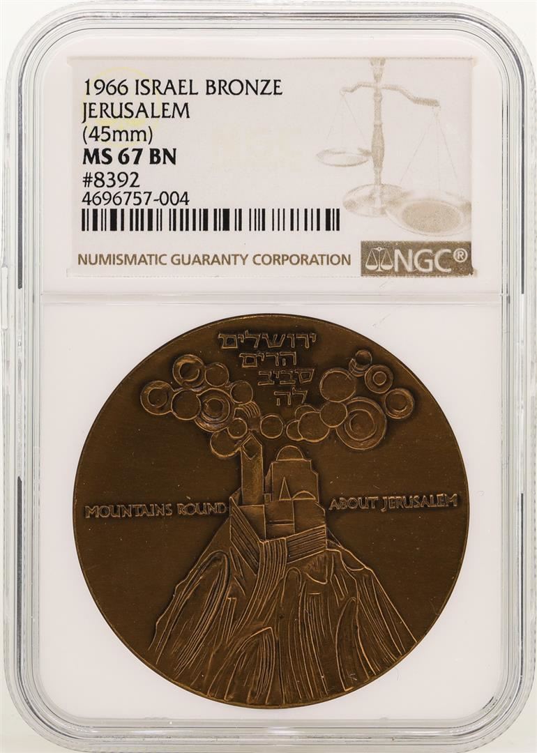 One 1966 Israel Bronze Official State Medal Jerusalem NGC MS67 BN. NGC Certified.