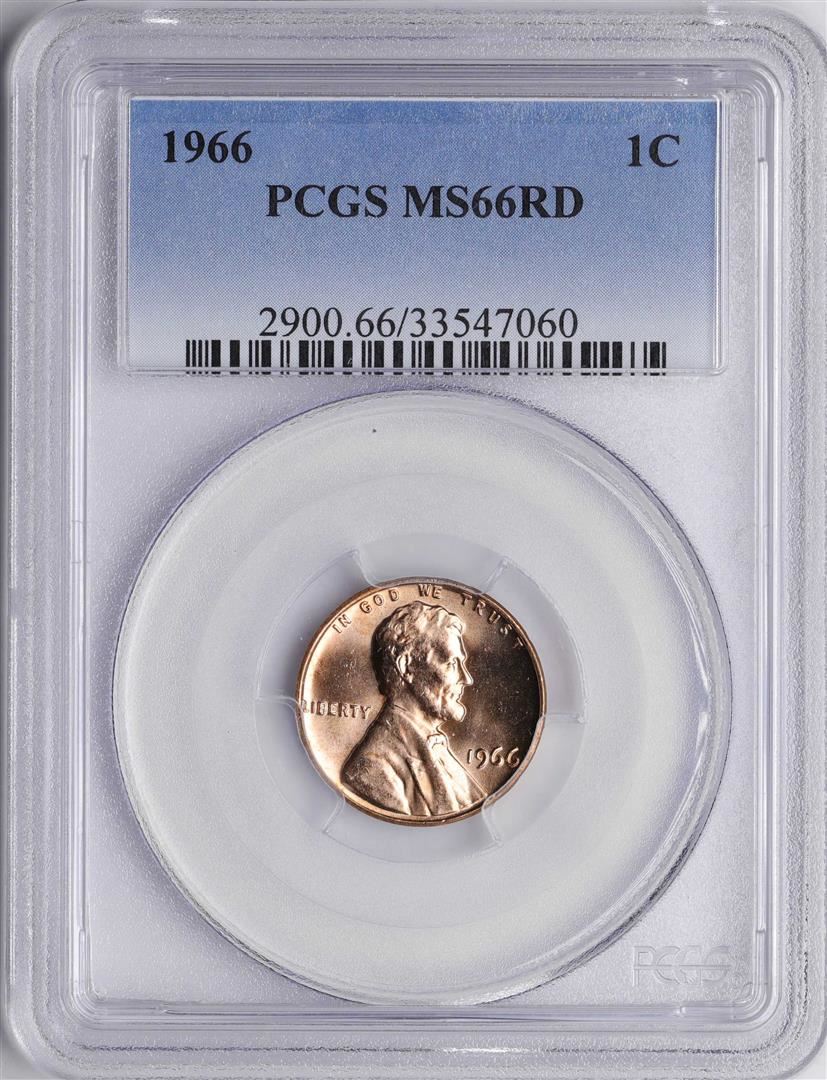 One 1966 Lincoln Wheat Cent Coin PCGS MS66RD. PCGS Graded.