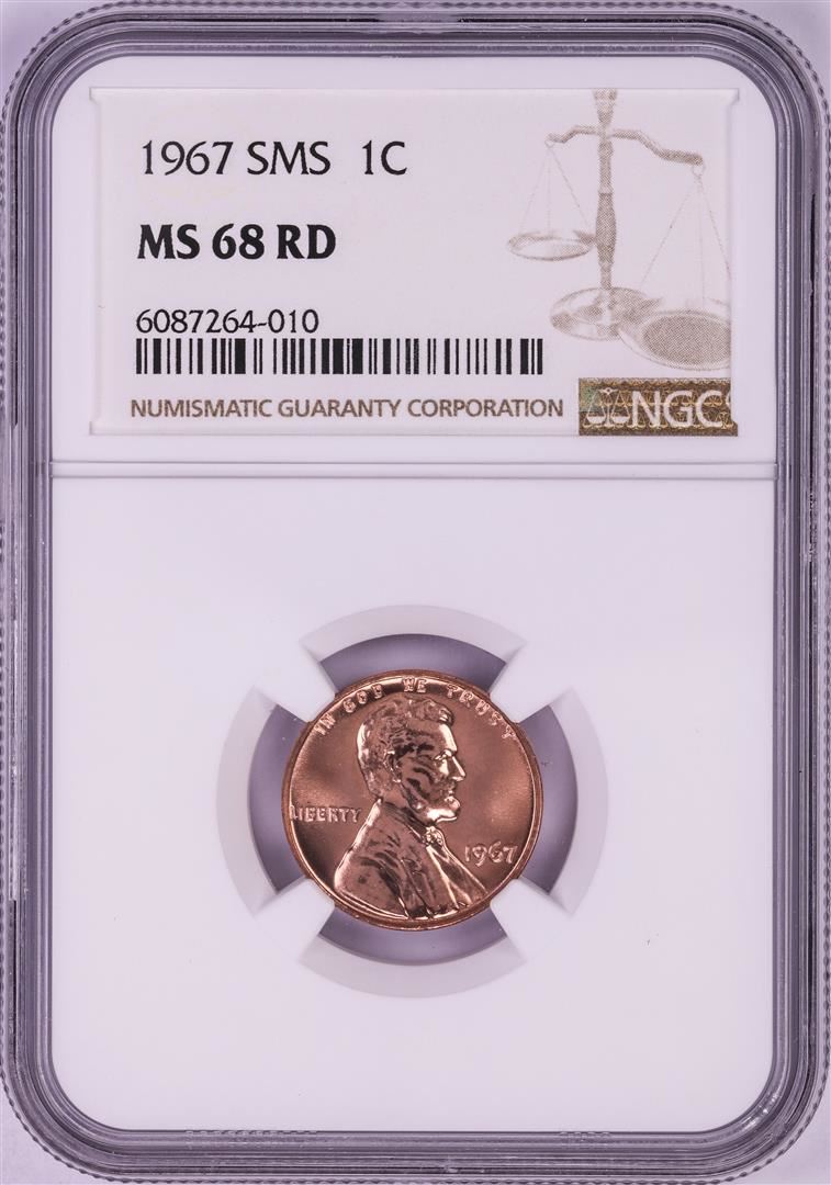 One 1967 SMS Lincoln Memorial Cent Coin NGC MS68RD. NGC Certified.