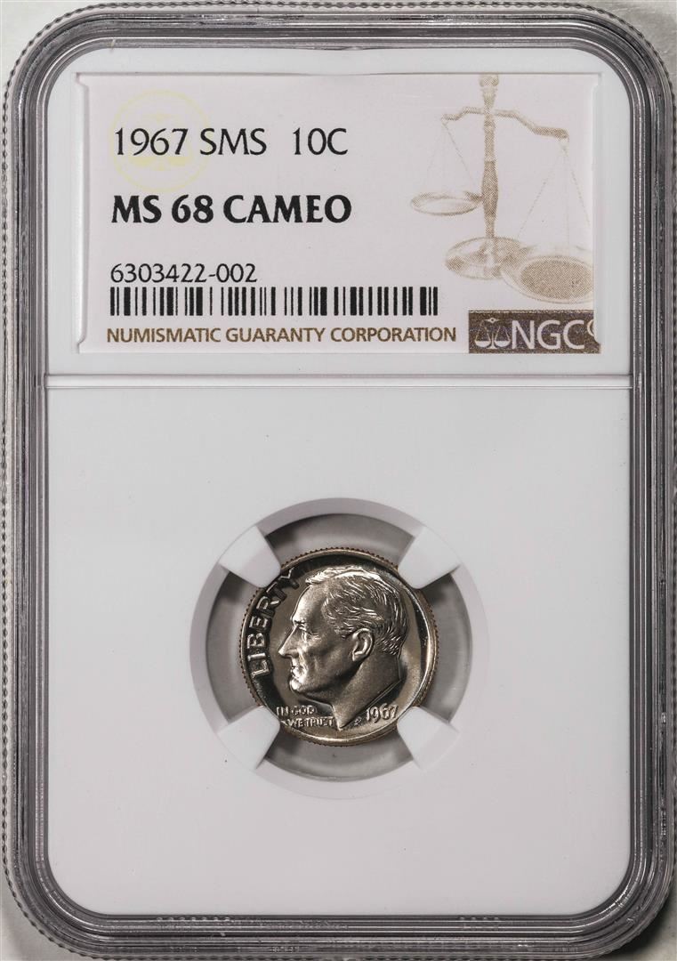 One 1967 SMS Roosevelt Dime Coin NGC MS68 Cameo. NGC Certified.