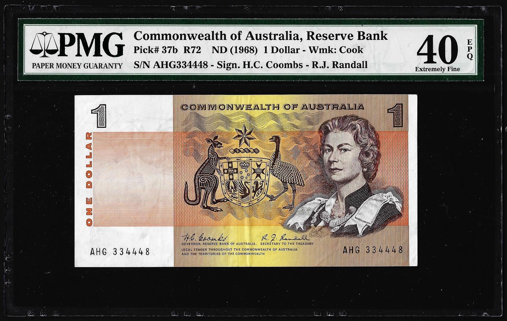 1968 Commonwealth of Australia 1 Dollar Note Pick# 37b PMG Extremely Fine 40EPQ
