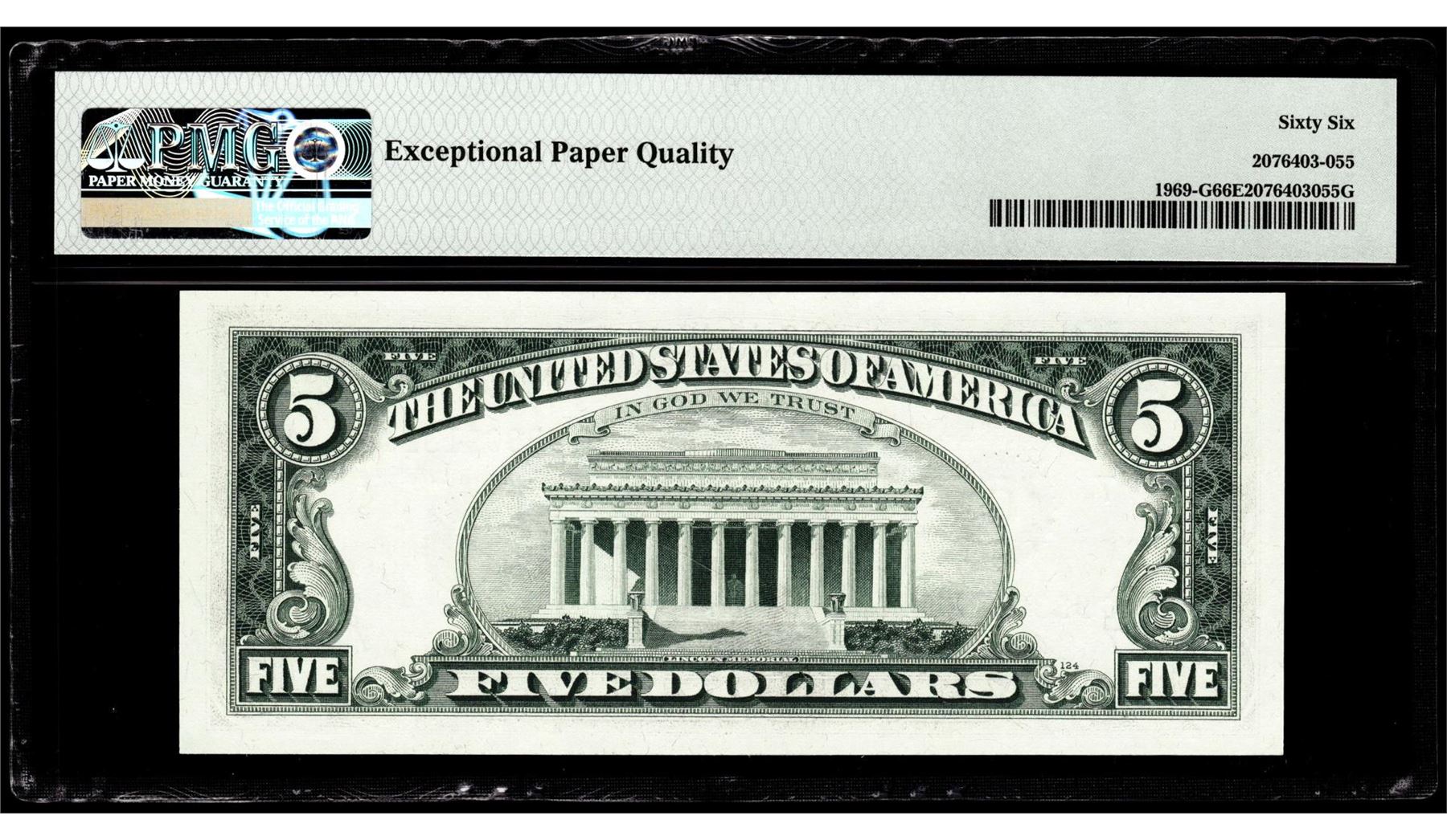 1969 $5 Federal Reserve Note Chicago Fr.1969-G PMG Gem Uncirculated 66EPQ