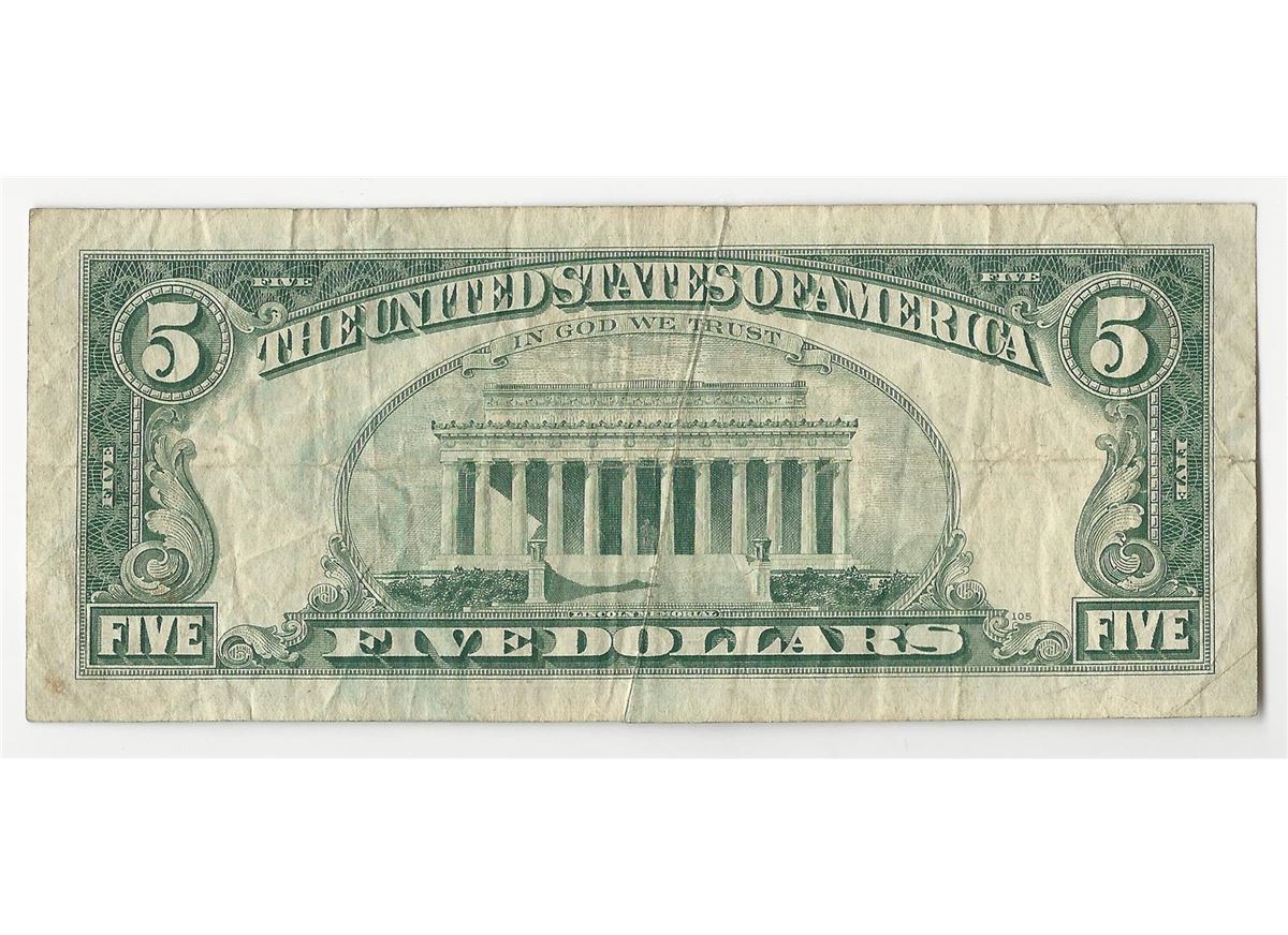 One 1969 $5 Federal Reserve Note Gutterfold ERROR.