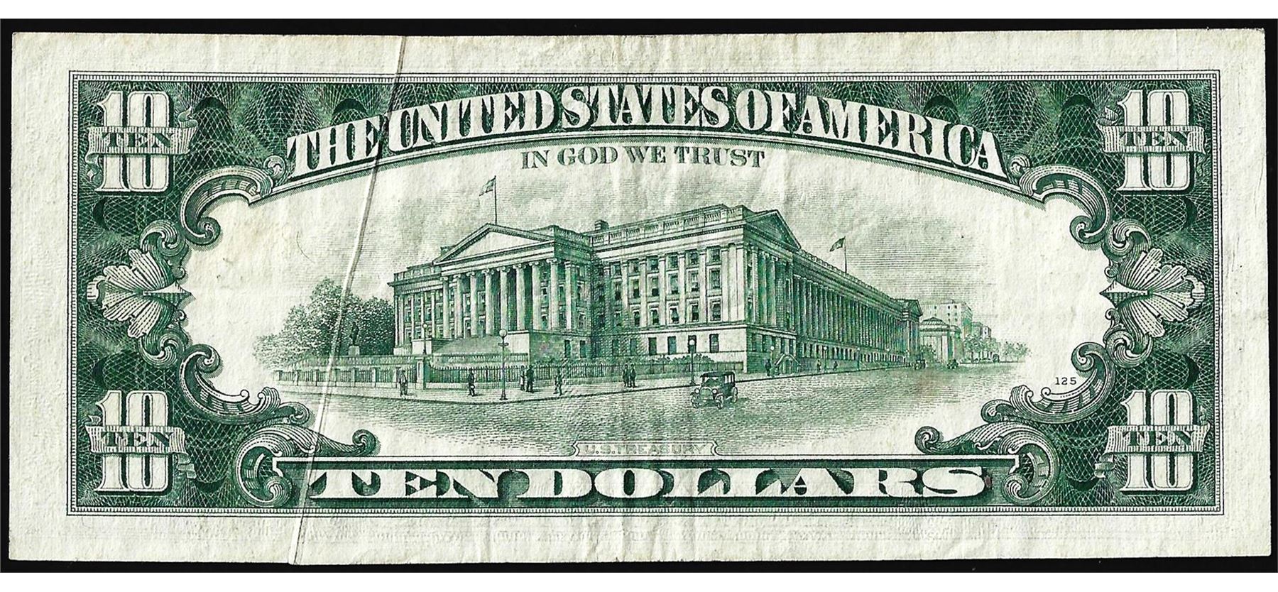 One 1969B $10 Federal Reserve Note Gutter Fold Error.