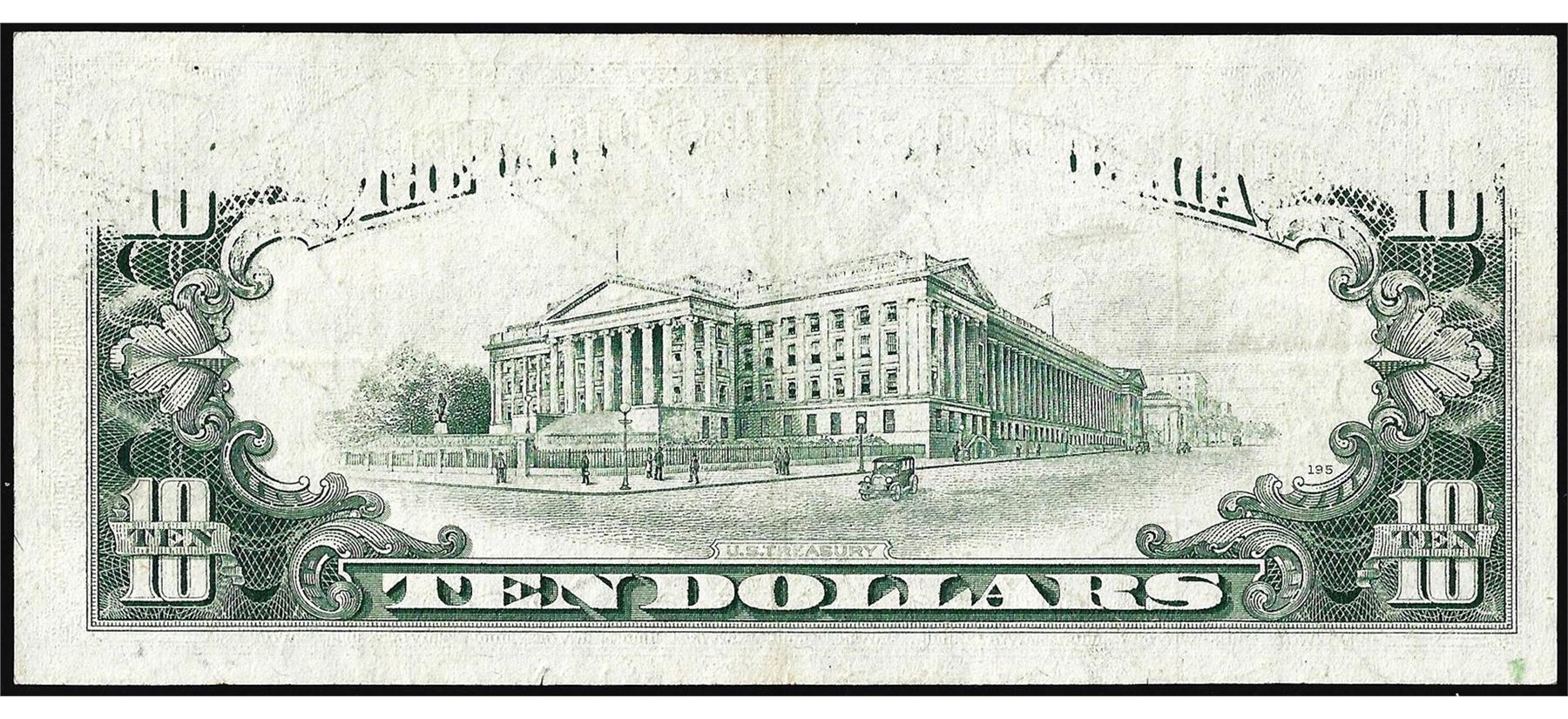 One 1969C $10 Federal Reserve Note Insufficient Inking Error.
