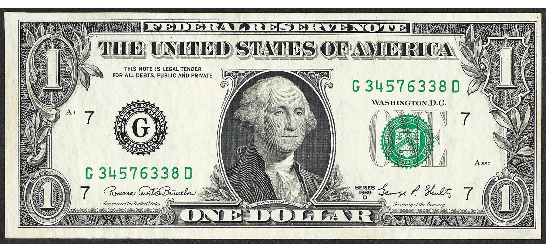 One 1969D $1 Federal Reserve Note ERROR Offset.
