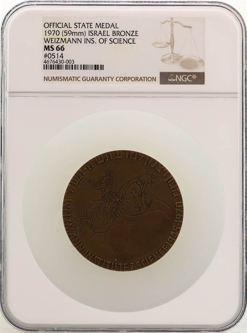 One 1970 Israel Bronze Official State Medal Weizmann Ins. Of Science NGC MS66. NGC Certified.