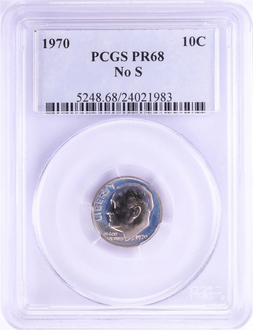 One 1970 No S Mintmark Proof Dime Coin PCGS PR68. PCGS Graded.
