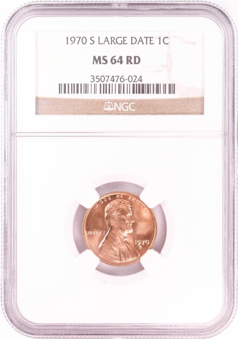 One 1970-S Large Date Lincoln Wheat Cent Coin NGC MS64RD. NGC Certified.