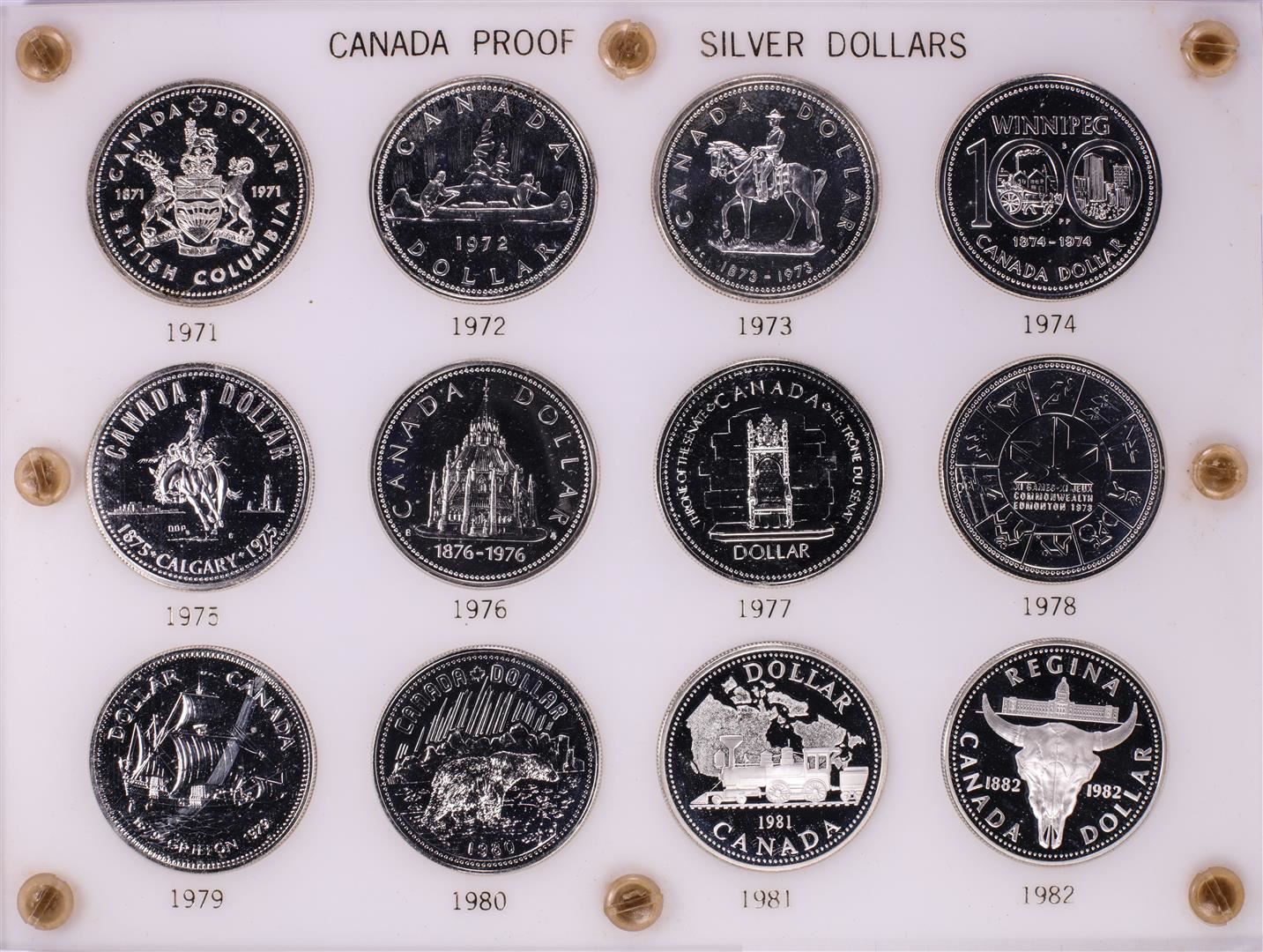 1971-1982 Proof $1 Canada Commemorative Silver Dollar Coin Sets in Capital Plastic