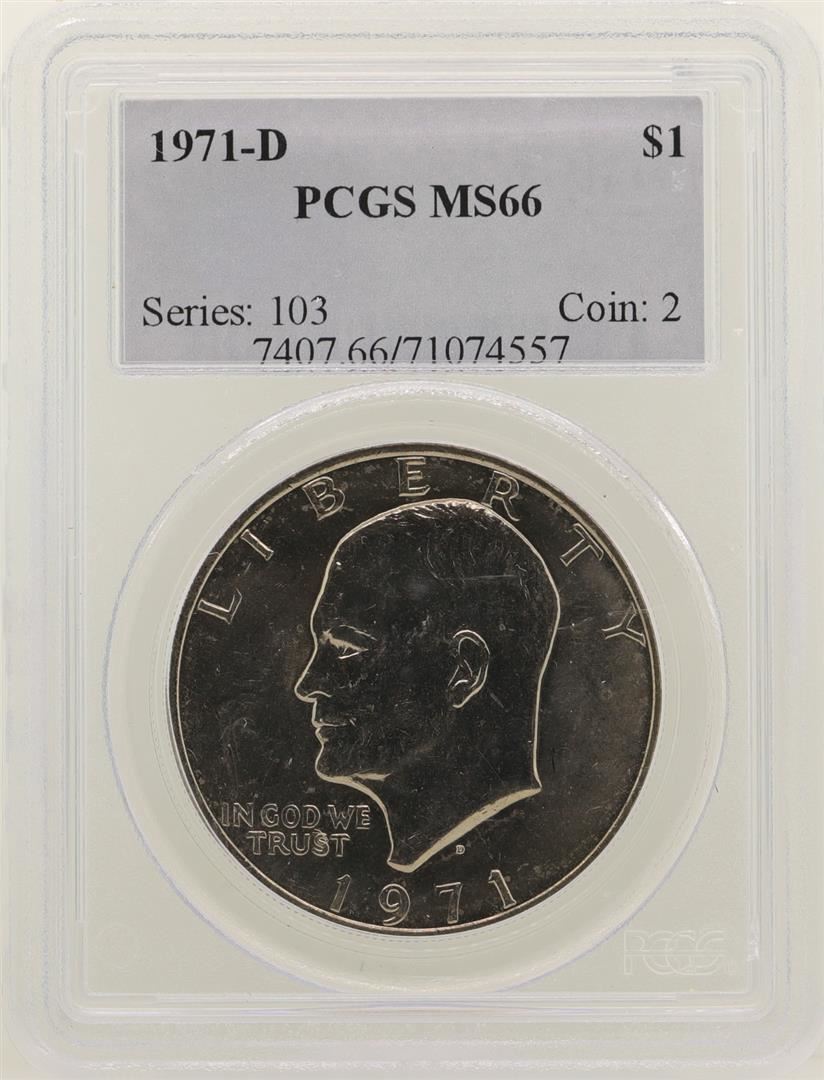 One 1971-D Eisenhower Dollar PCGS MS66. PCGS Graded.