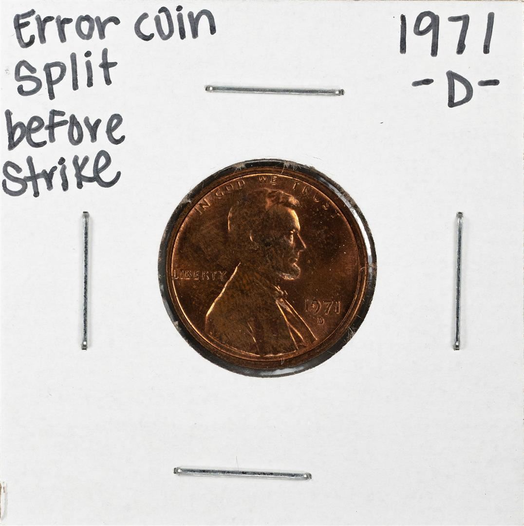 One 1971-D Lincoln Cent Error Coin Split Before Strike.