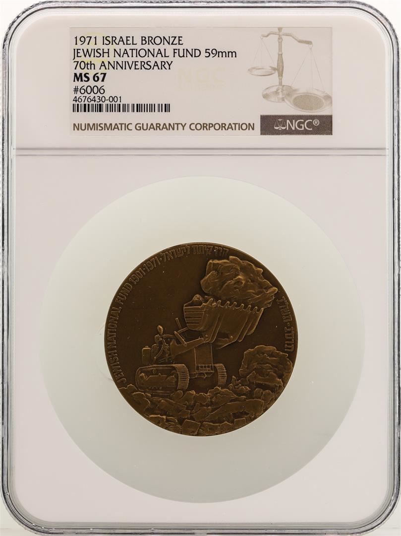 One 1971 Israel Bronze Jewish National Fund 70th Anniversary Medal NGC MS67. NGC Certified.
