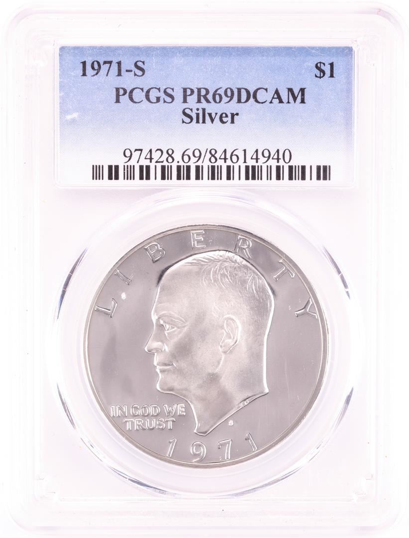 One 1971-S $1 Proof Eisenhower Silver Dollar Coin PCGS PR69DCAM. PCGS Graded.