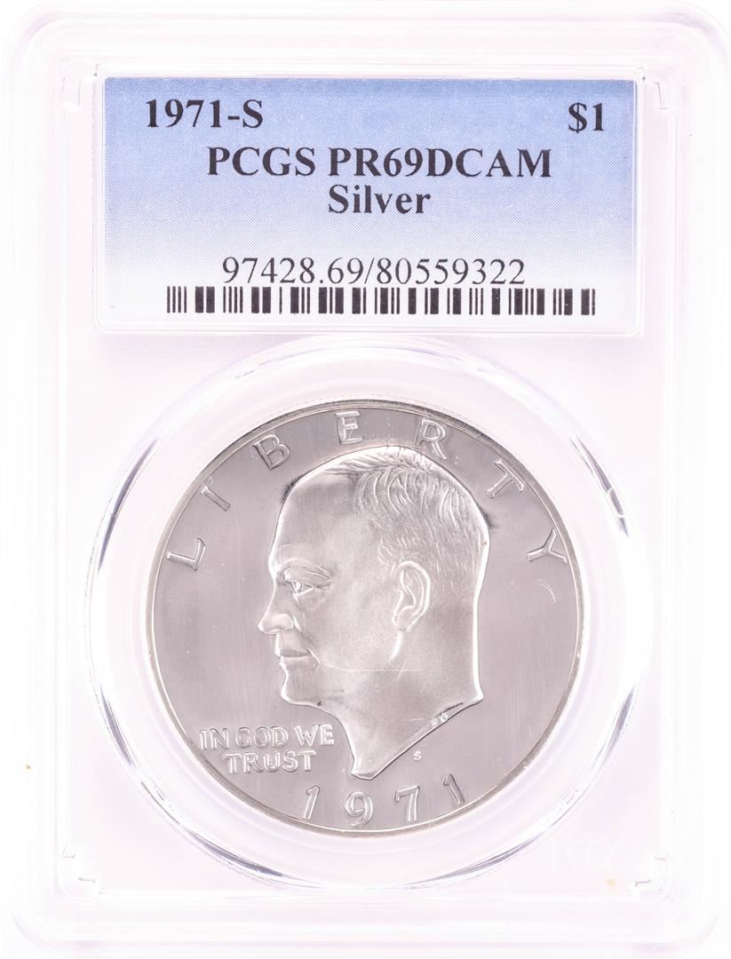 One 1971-S $1 Proof Eisenhower Silver Dollar Coin PCGS PR69DCAM. PCGS Graded.