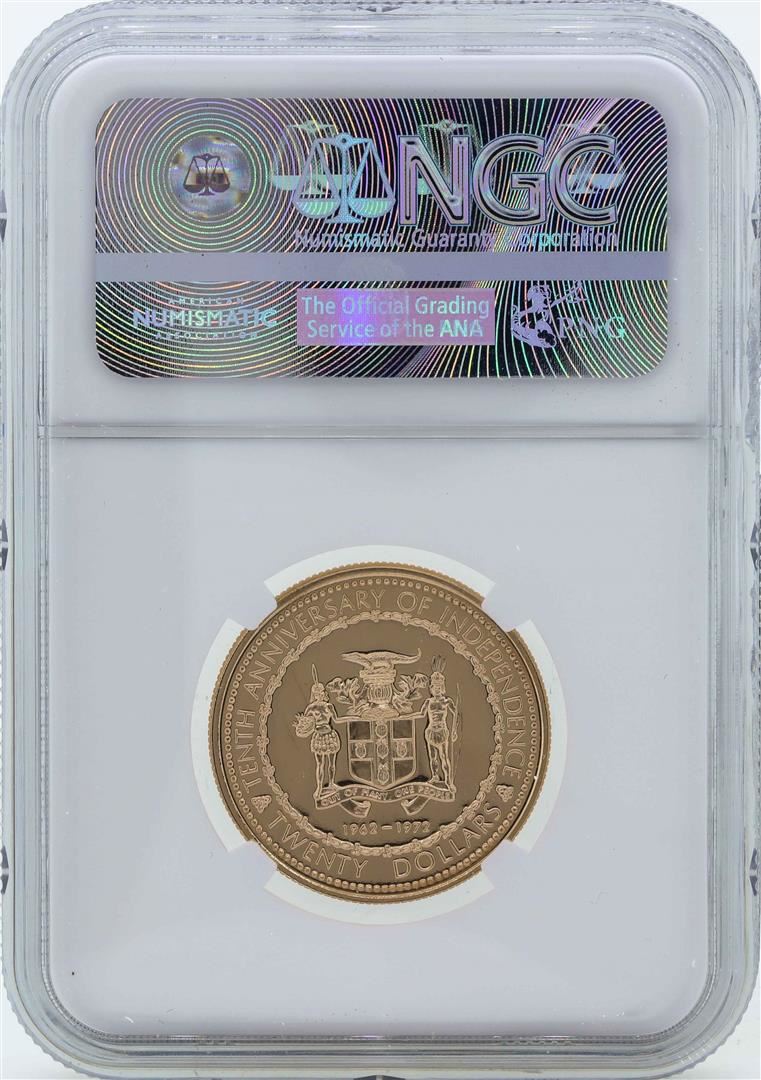 1972 $20 Jamaica Independence Anniversary Gold Coin NGC PF68 Cameo