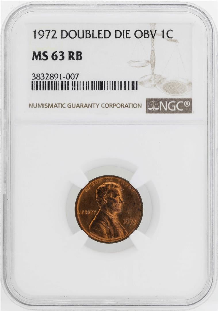 One 1972 Doubled Die Obverse Lincoln Wheat Cent Coin NGC MS63RB. NGC Certified.