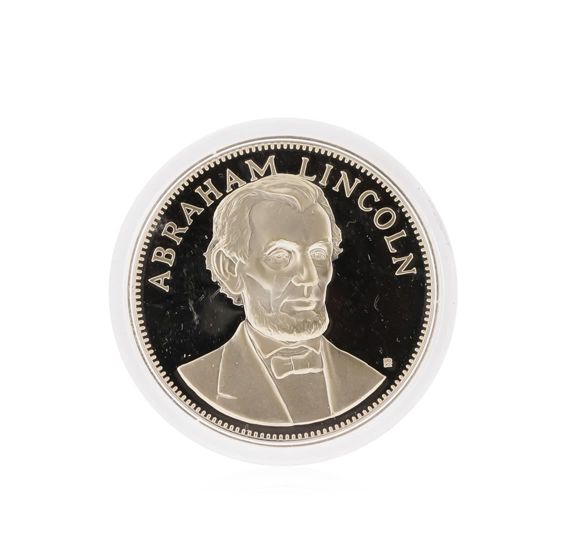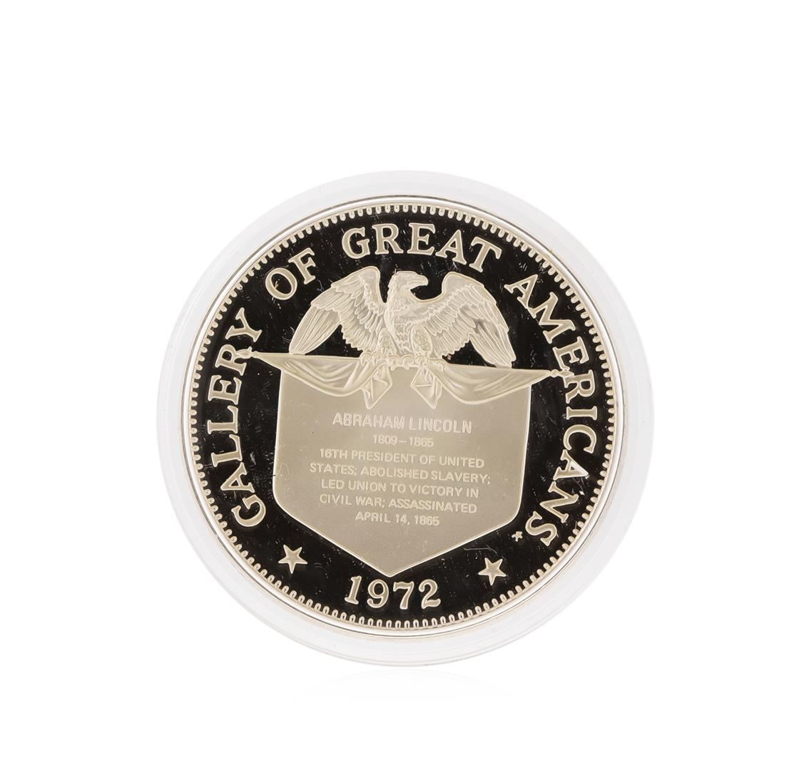 One 1972 Franklin Mint Abraham Lincoln Sterling Silver Proof Great Americans Medal.