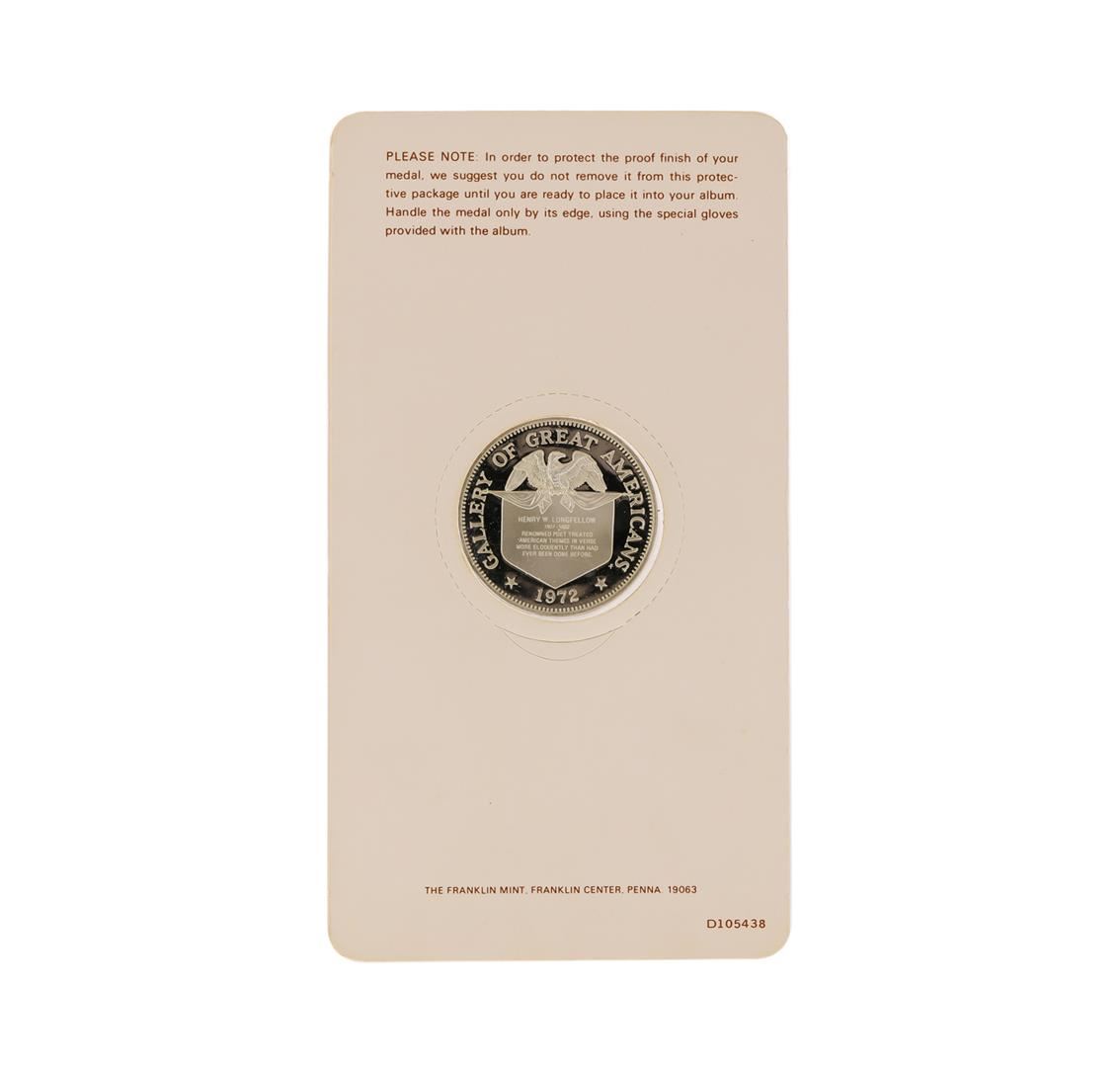 One 1972 Franklin Mint Henry Wadsworth Longfellow Sterling Silver Proof Medal.