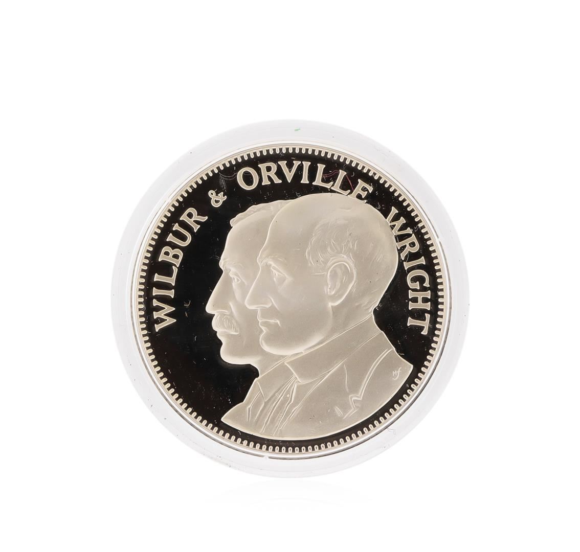 One 1972 Franklin Mint Wilbur & Orville Wright Sterling Silver Proof Medal.