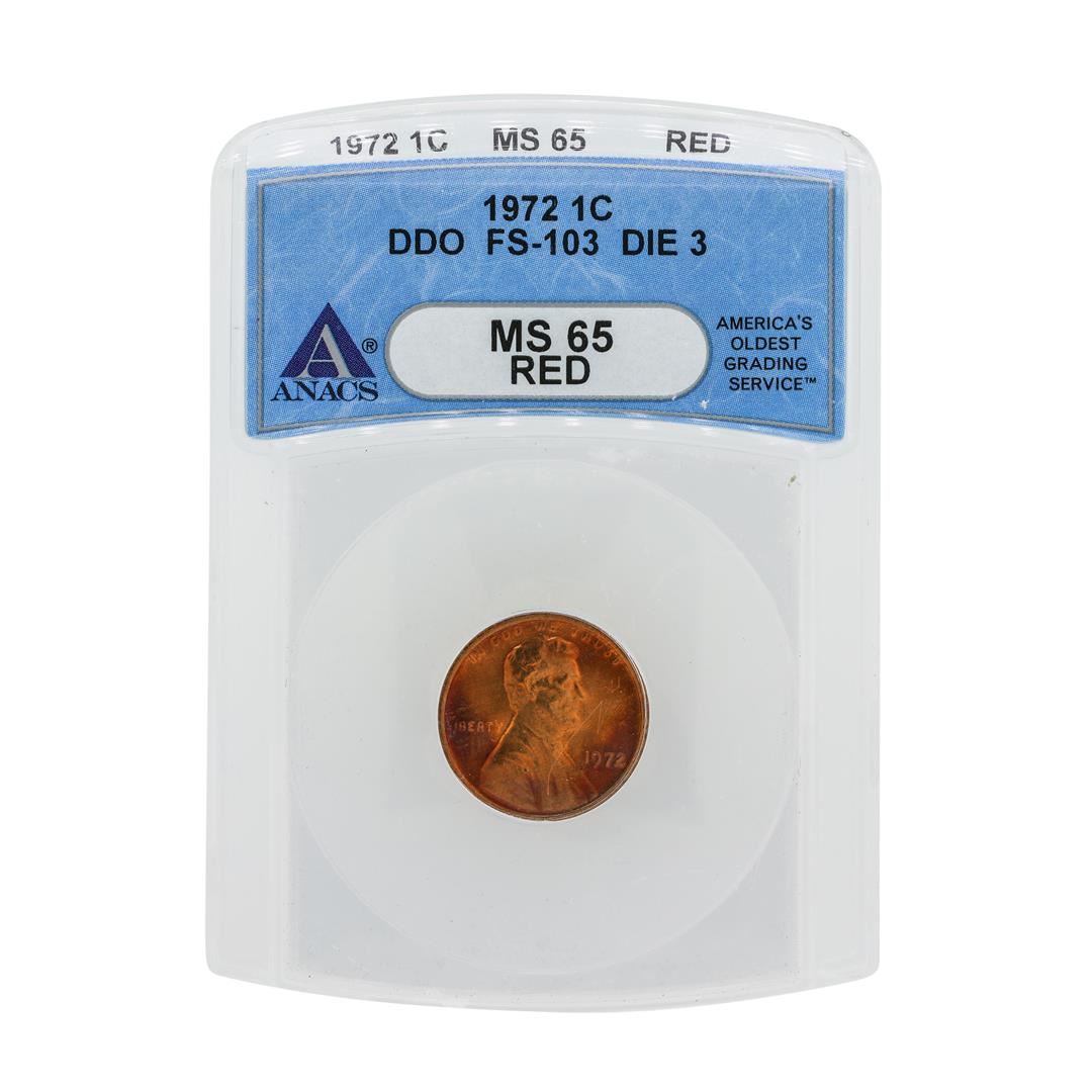 One 1972 Lincoln Cent DDO FS-103 Die 3 ANACS MS65RD. ANACS Certified.