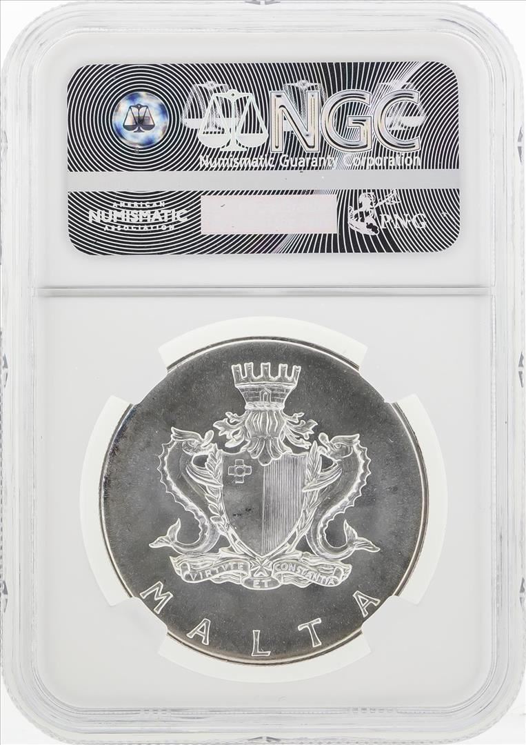 One 1972 Malta 2 Pounds Fort San Angelo Silver Coin NGC MS66. NGC Certified.