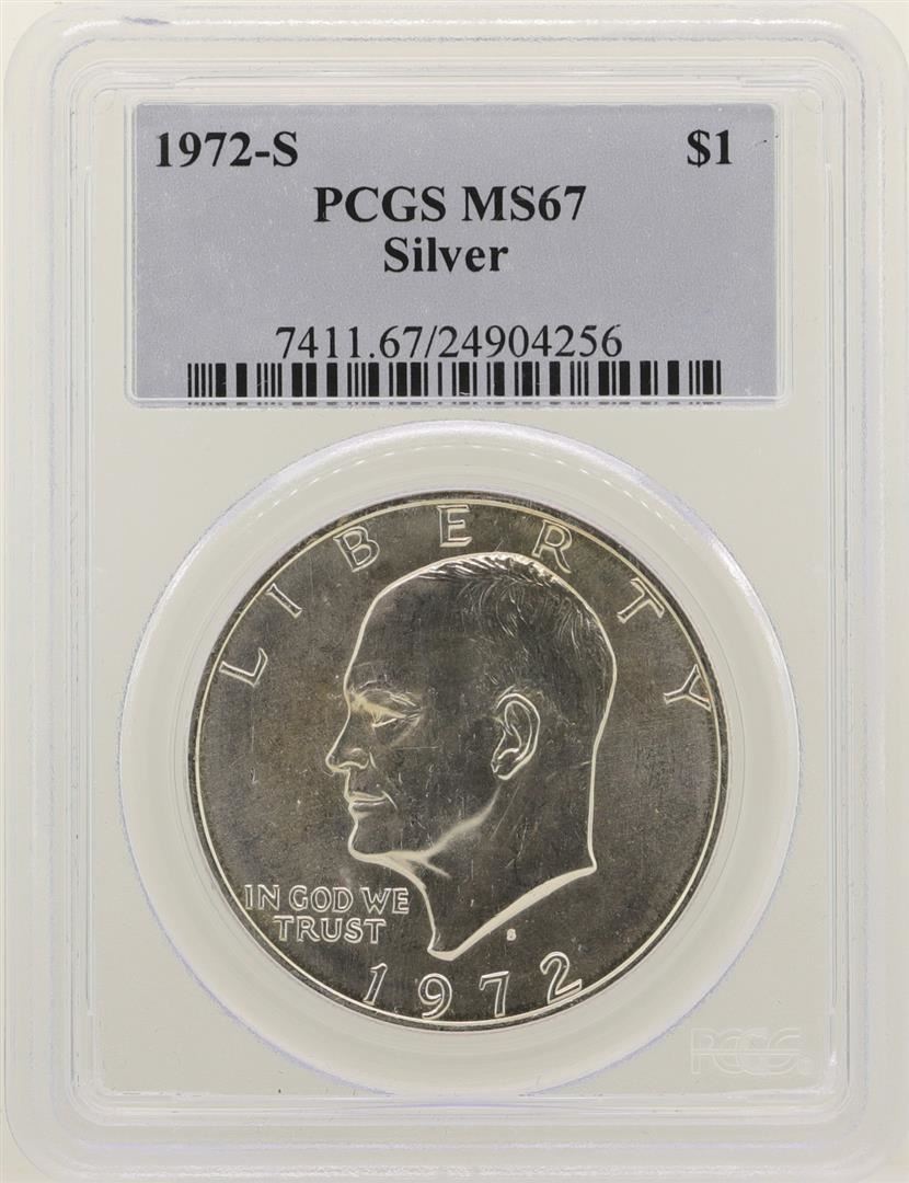 One 1972-S Eisenhower Silver Dollar PCGS MS67. PCGS Graded.