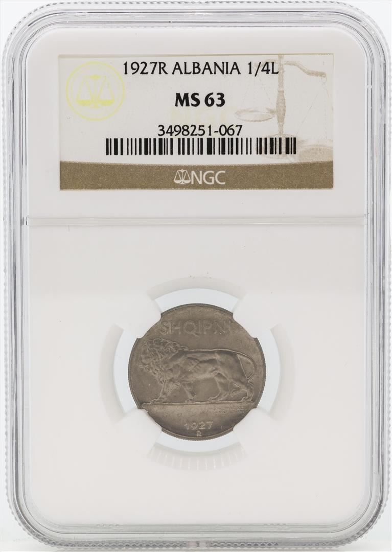 One 1972R Albania 1/4 Leku Coin NGC MS63. NGC Certified.