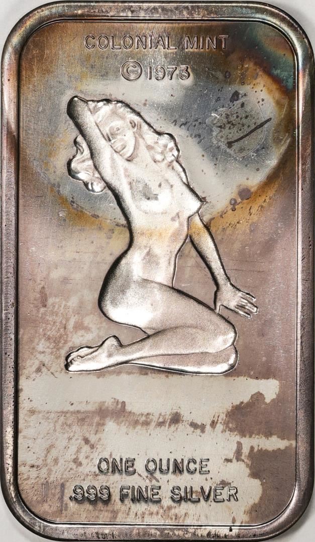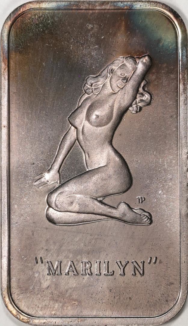 One 1973 Marilyn Monroe 1 oz Colonial Mint Silver Art Bar.