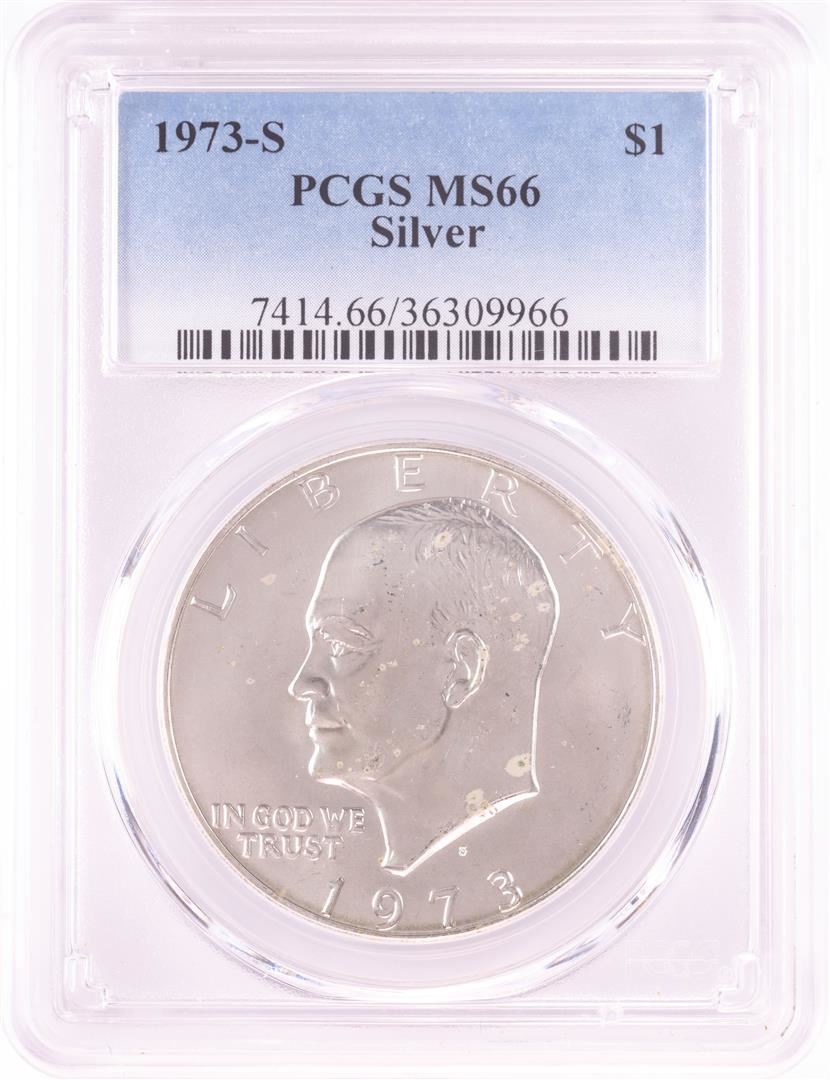 One 1973-S $1 Eisenhower Silver Dollar Coin PCGS MS66. PCGS Graded.