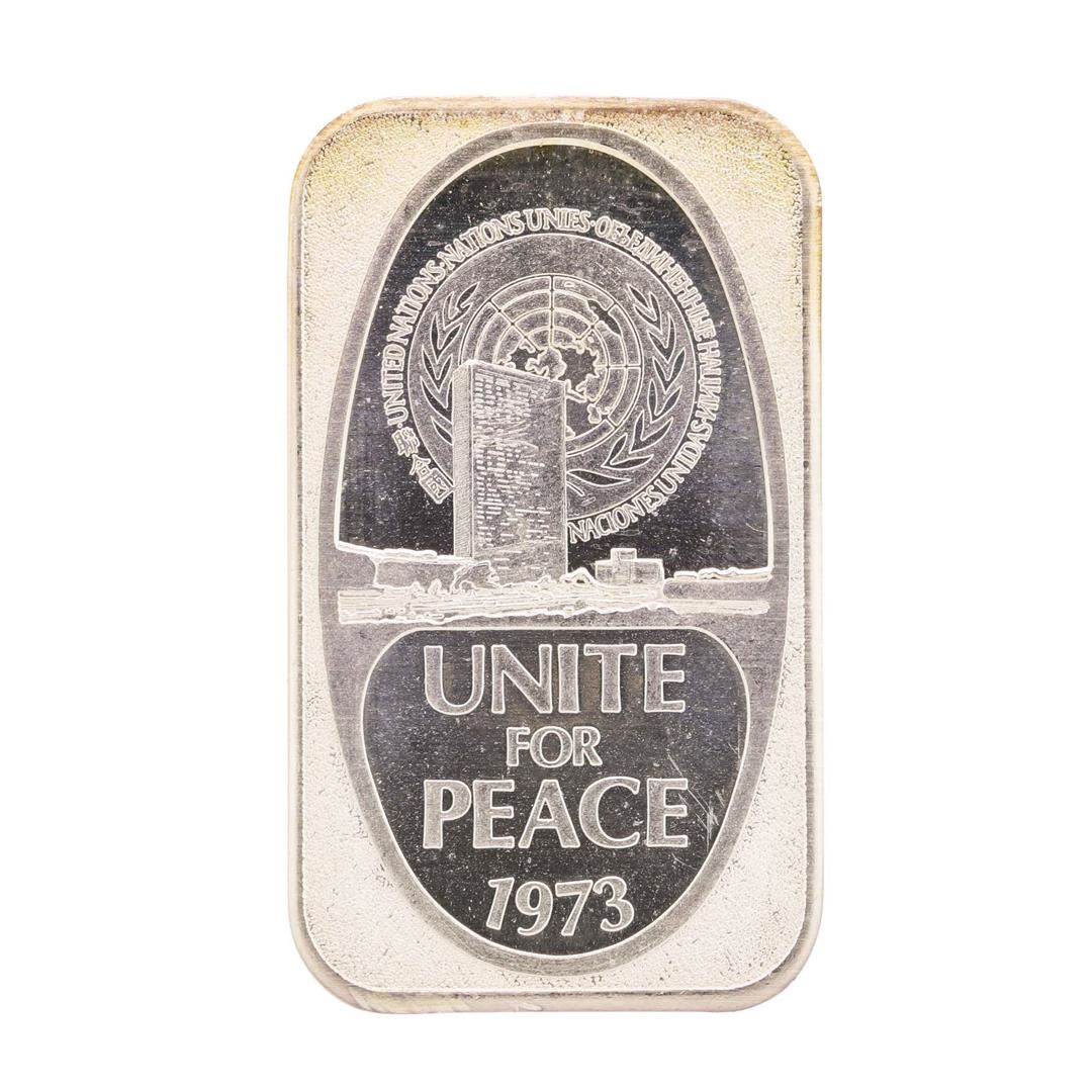 One 1973 Unite for Peace 1 oz .999 Fine Silver Art Bar.