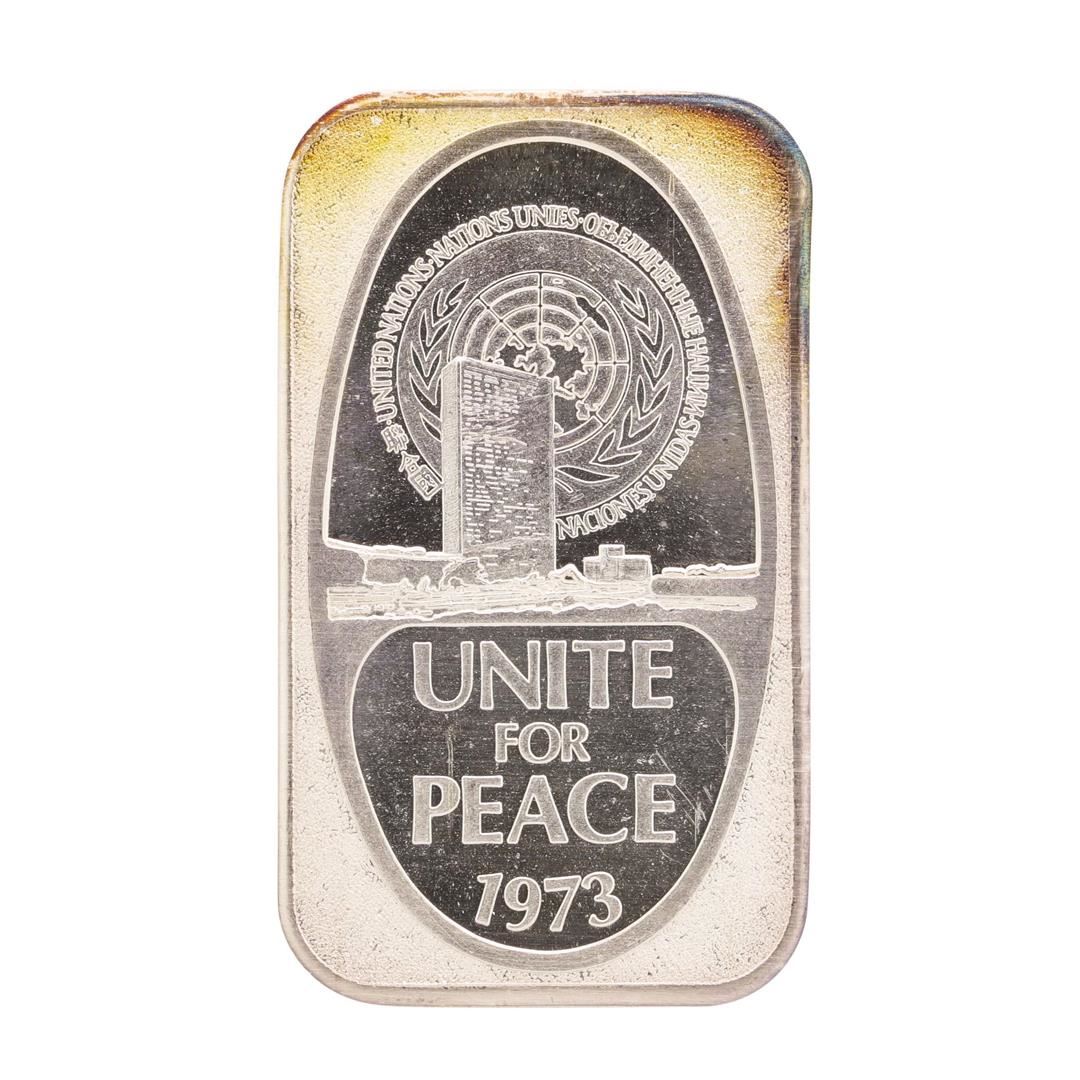 One 1973 Unite for Peace 1 oz .999 Fine Silver Art Bar.