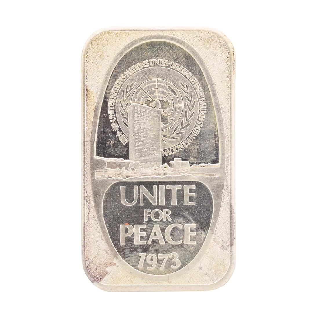 One 1973 Unite for Peace 1 oz .999 Fine Silver Art Bar.