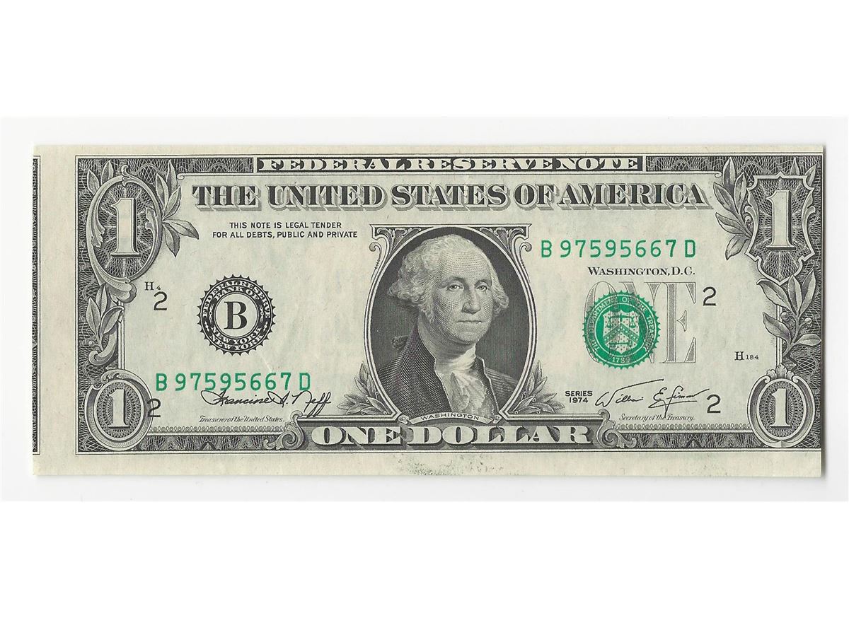 One 1974 $1 Federal Reserve Note ERROR Misalignment.