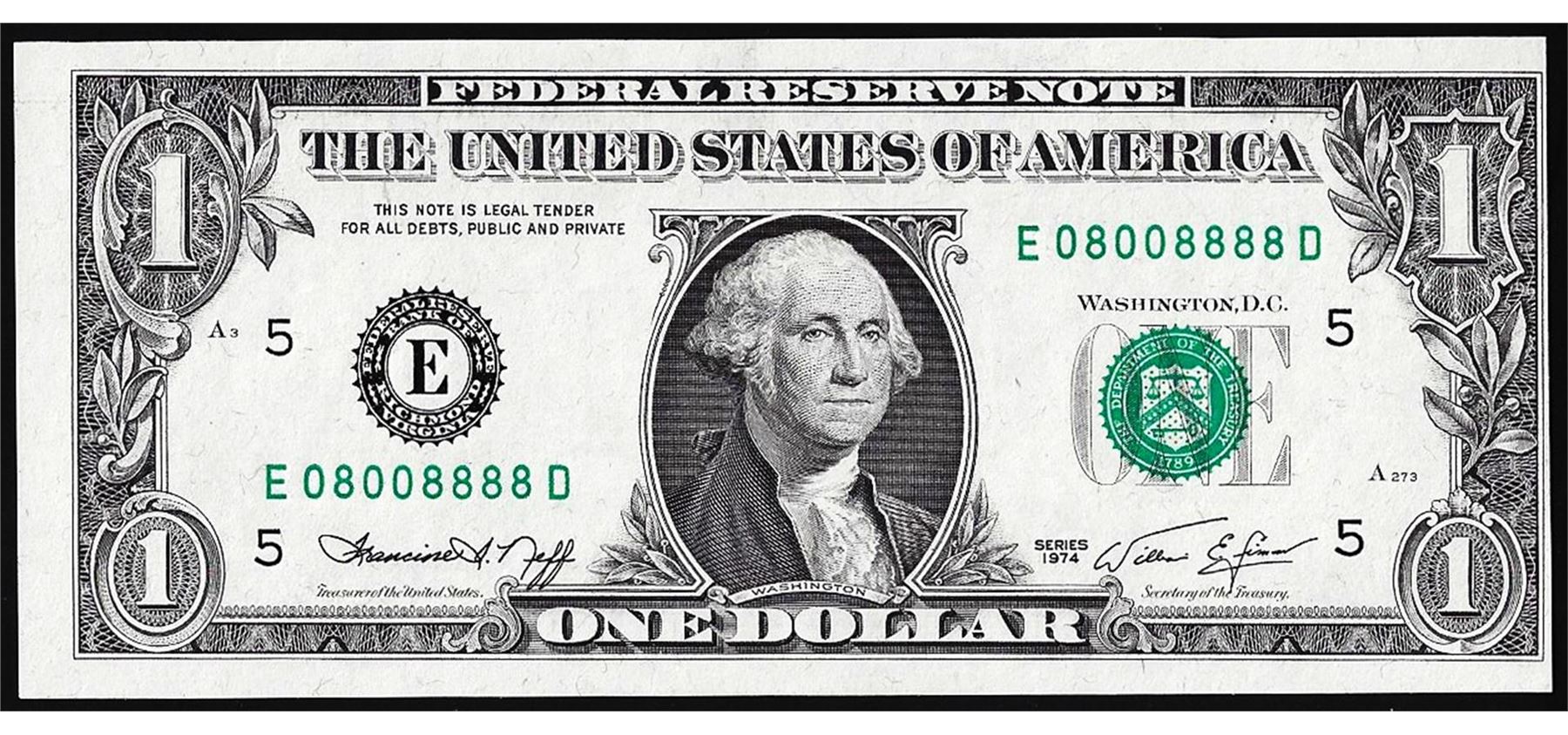 One 1974 $1 Federal Reserve Note Fancy Serial Number.