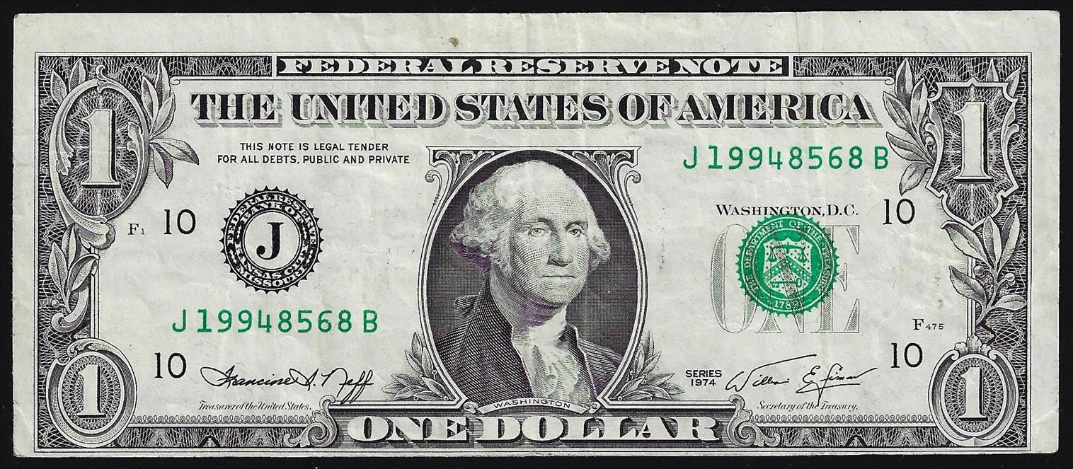 One 1974 $1 Federal Reserve Note Full Offset ERROR.