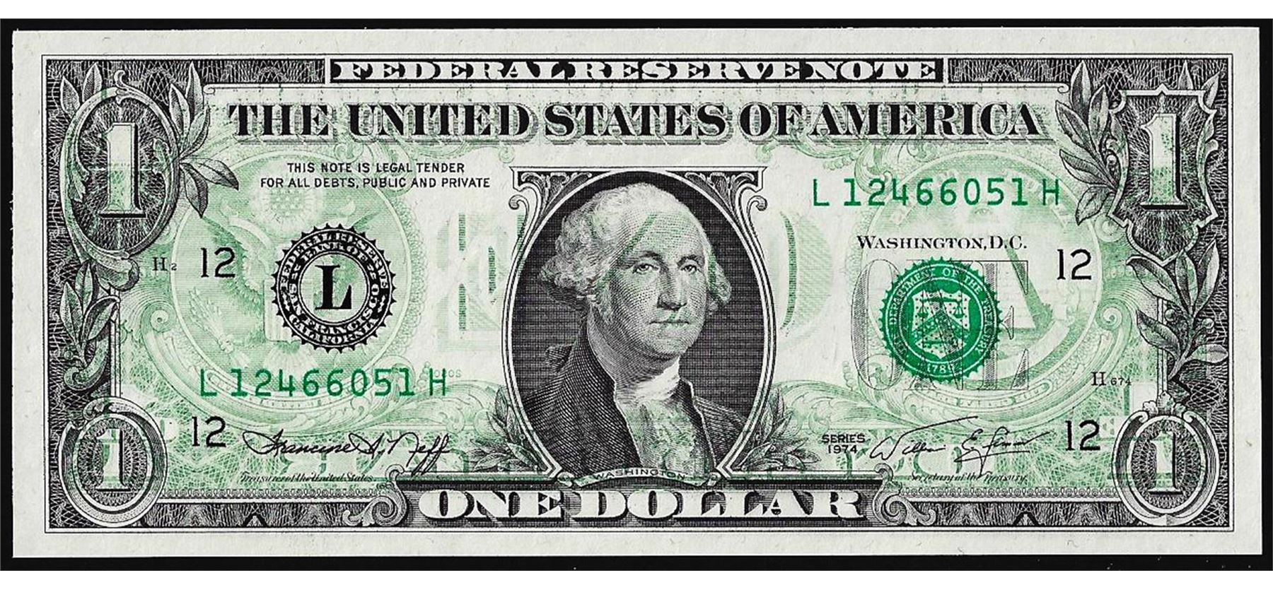 One 1974 $1 Federal Reserve Note Full Offset ERROR.
