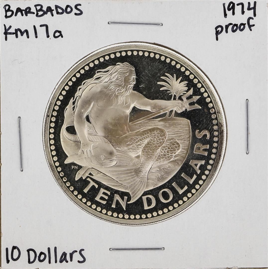 One 1974 $10 Barbados KM 17a Silver Proof Coin.