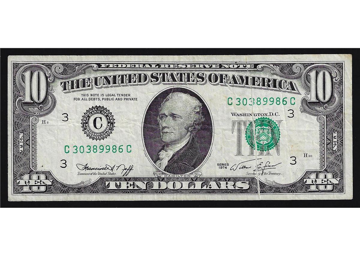 One 1974 $10 Federal Reserve Note Gutterfold ERROR.