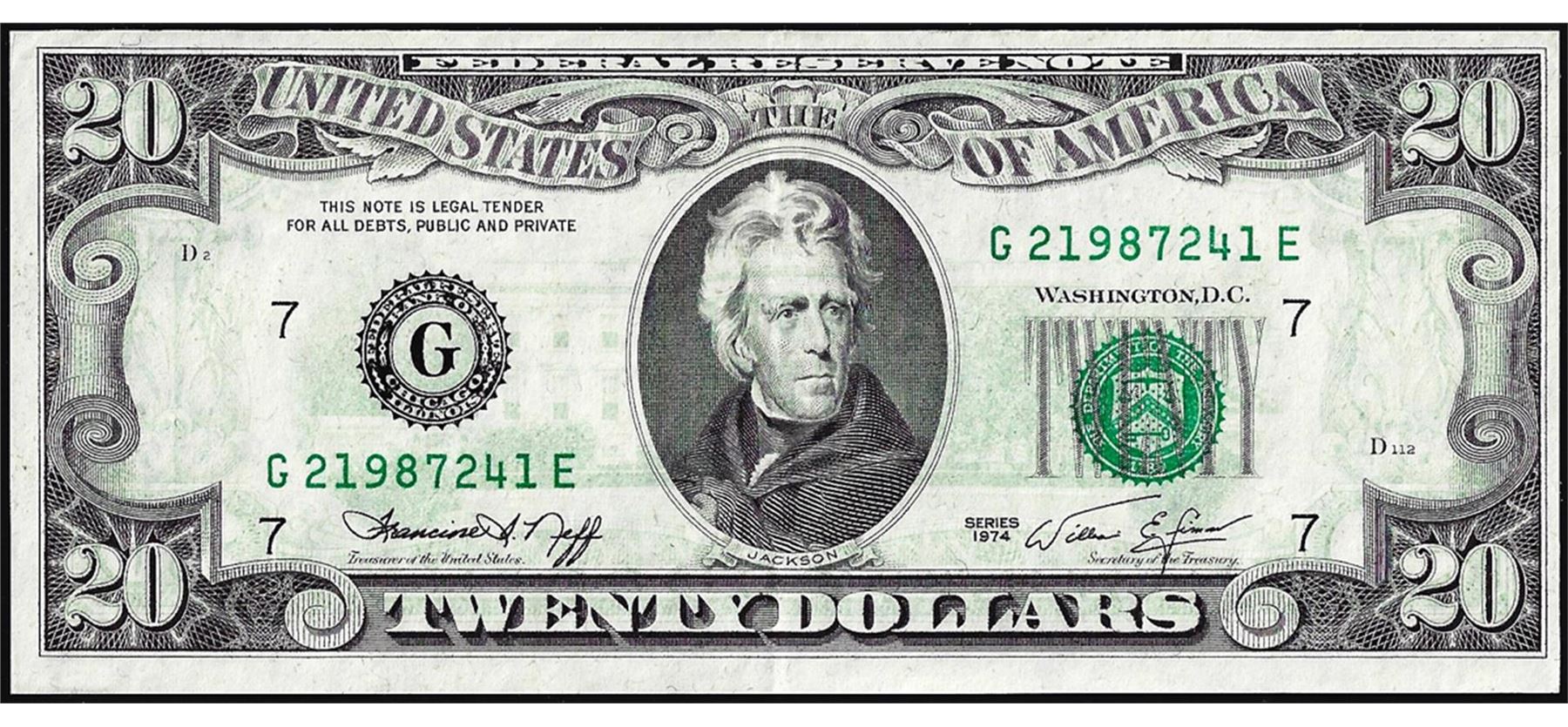 One 1974 $20 Federal Reserve Note Back to Face Full Offset ERROR.
