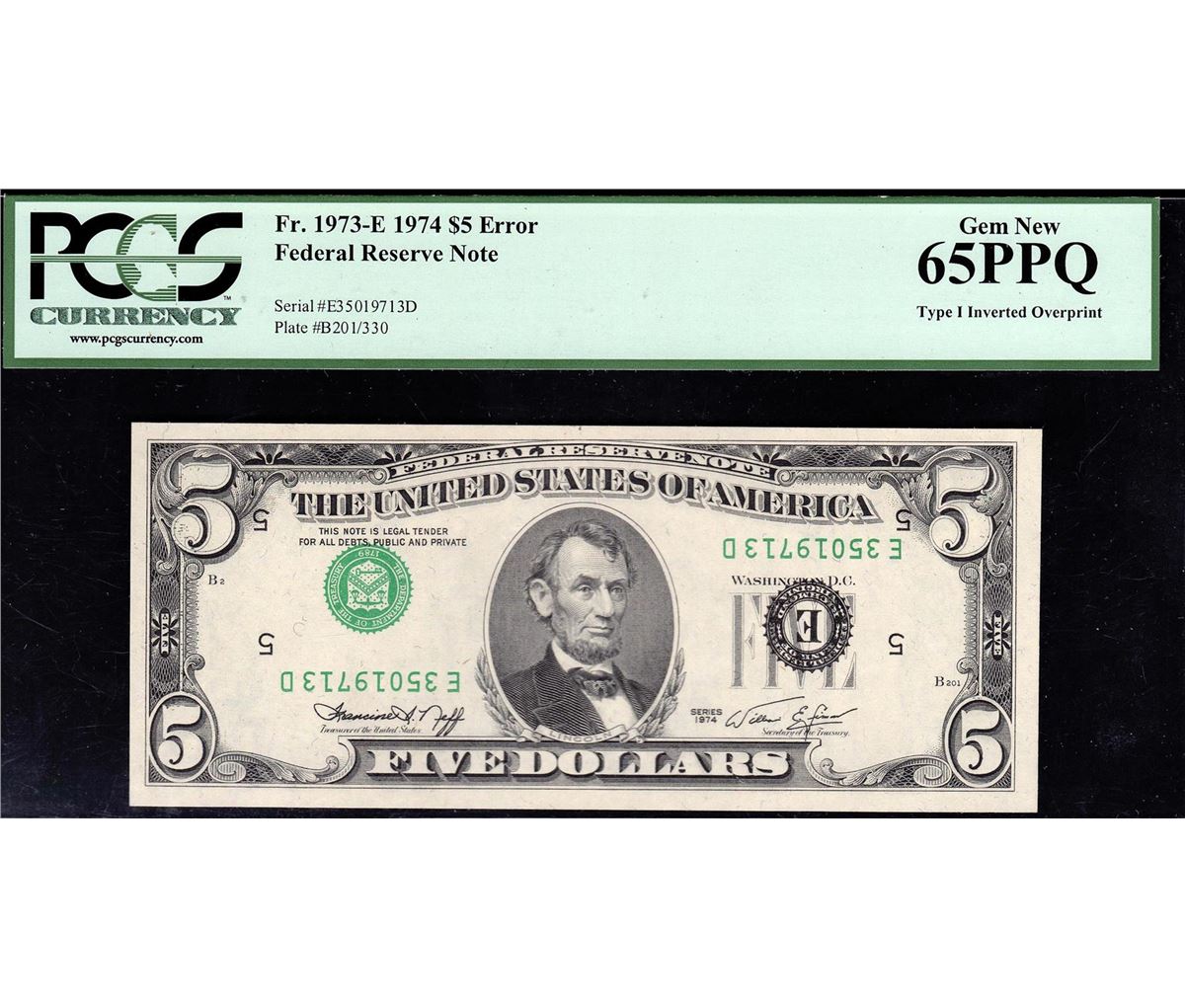 1974 $5 Federal Reserve Note Type I Inverted Overprint ERROR PCGS 65PPQ