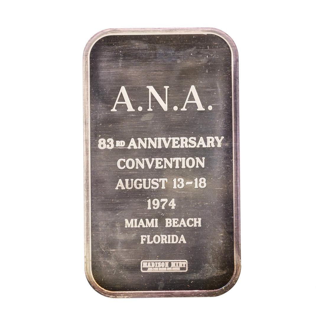 One 1974 ANA Convention Florida 1 oz .999 Fine Silver Art Bar.