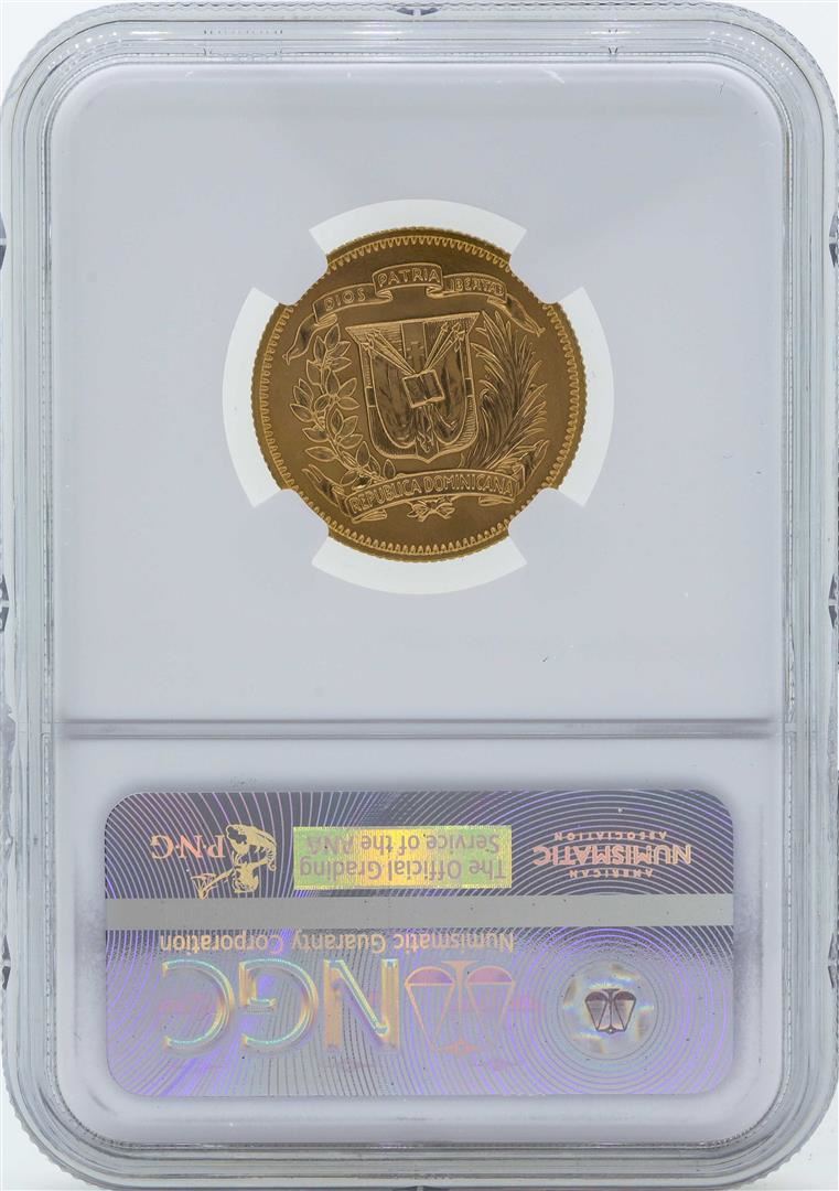 One 1974 Dominican Republic 30 Pesos Central American Games Gold Coin NGC MS68. NGC Certified.