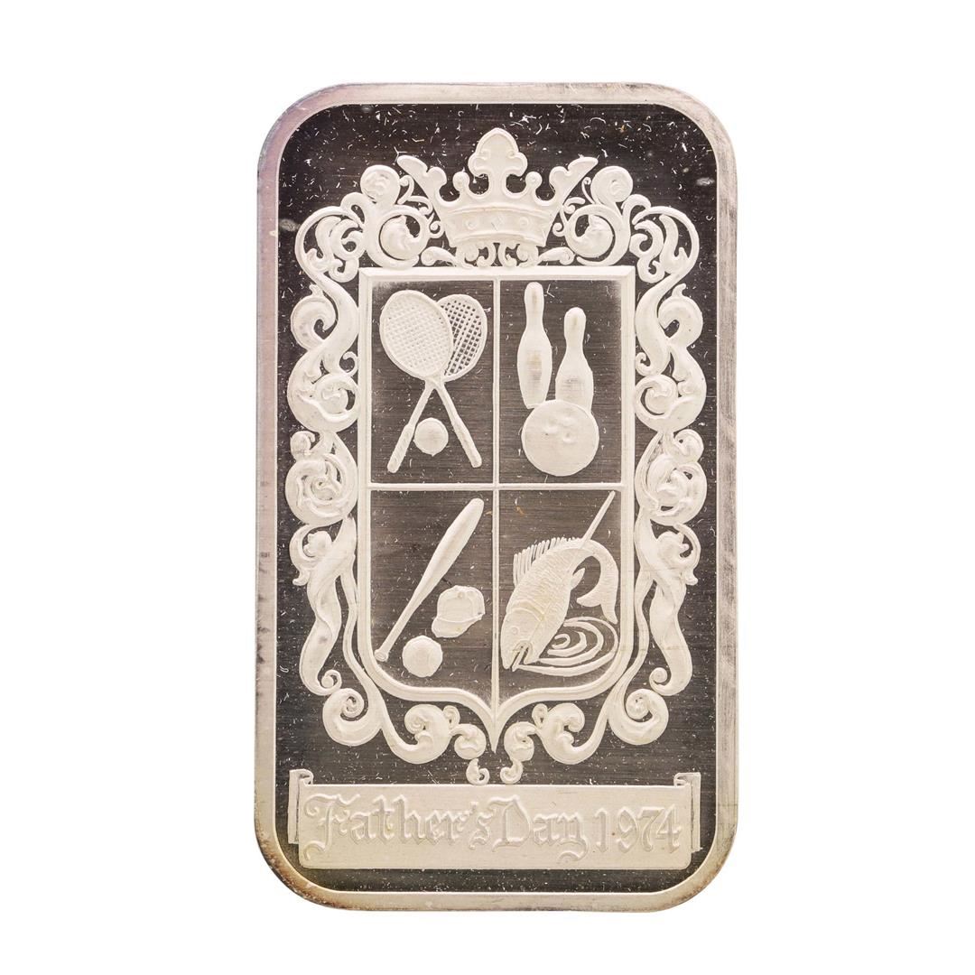 One 1974 Fathers Day Madison Mint 1 oz .999 Fine Silver Art Bar.
