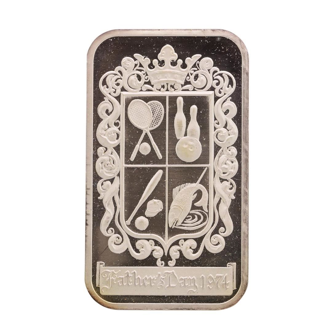 One 1974 Fathers Day Madison Mint 1 oz .999 Fine Silver Art Bar.