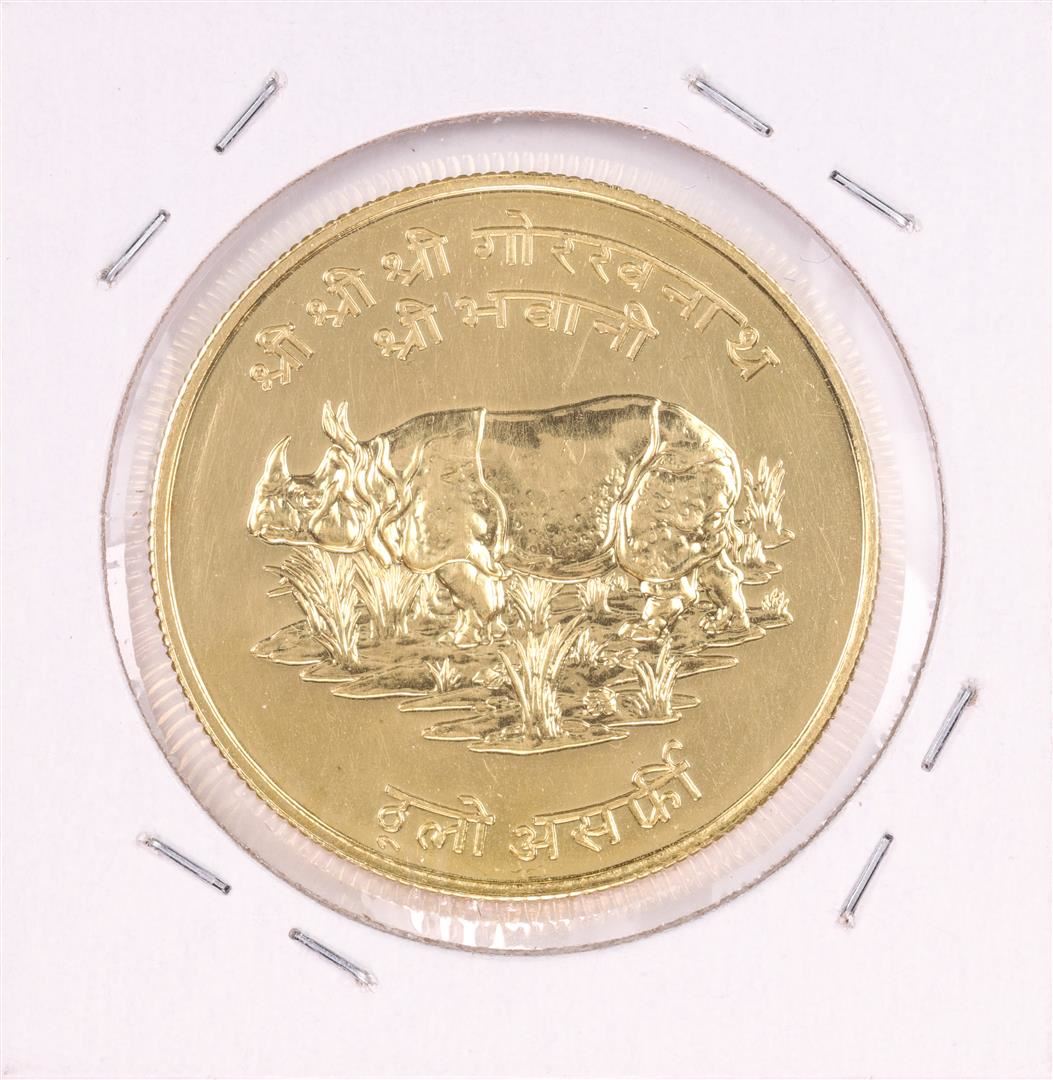 One 1974 Nepal 1000 Rupee Conservation Rhinoceros Gold Coin.