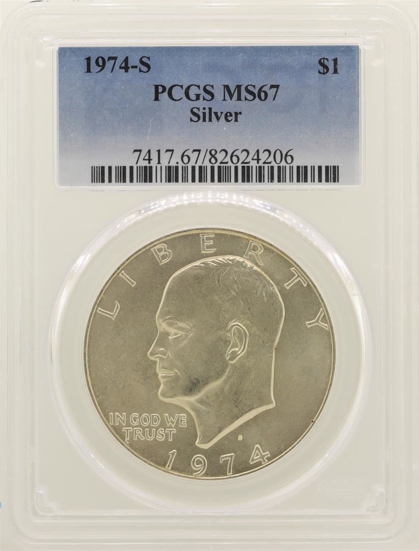 One 1974-S Eisenhower Silver Dollar PCGS MS67. PCGS Graded.